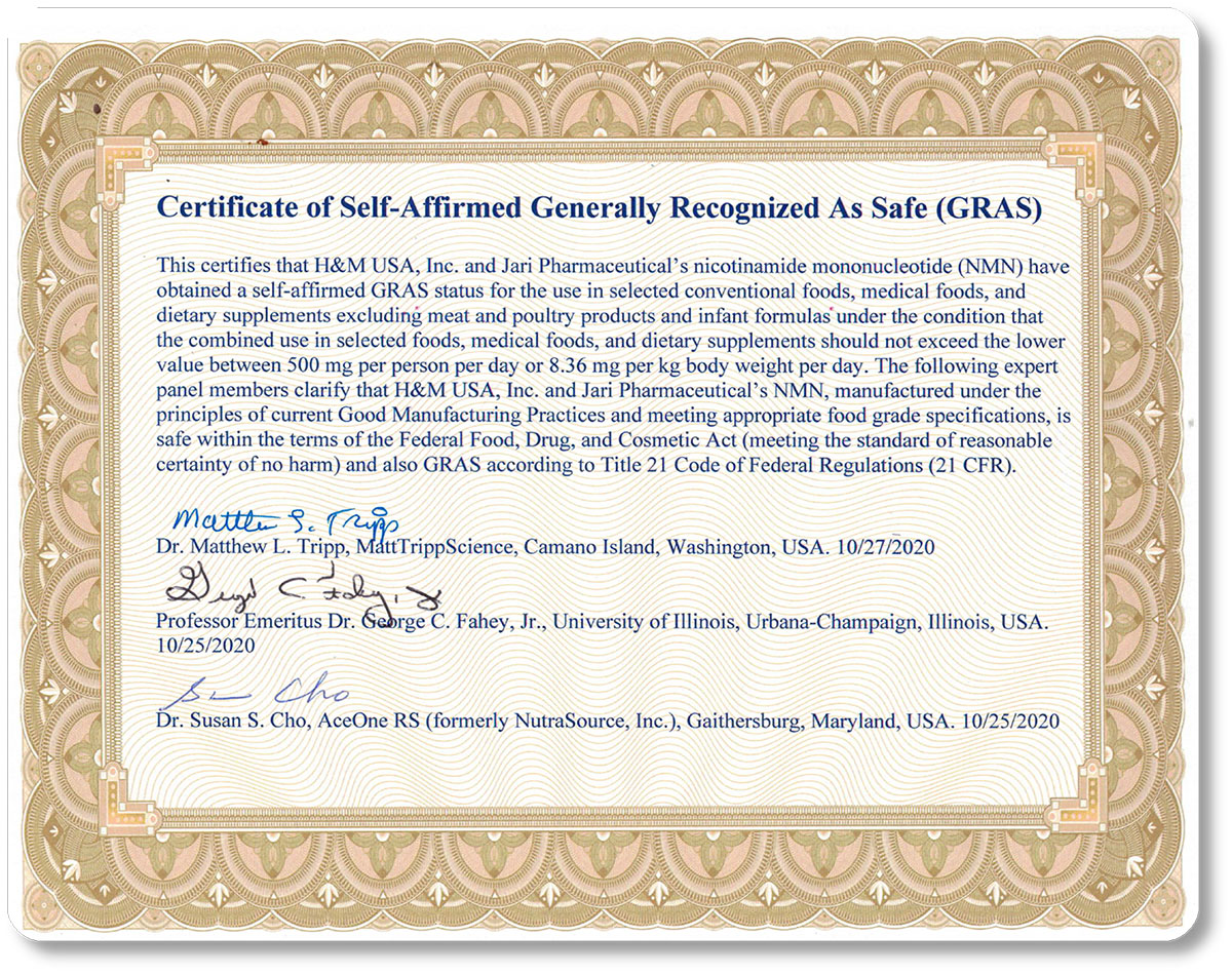 UltiNADⓇ NMN have obtained a self-affirmed GRAS status for the use in selected conventional foods, medical foods, and dietary.